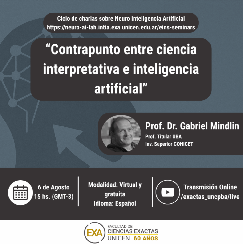 El próximo 6 de agosto a las 15:00 (GMT-3), el Prof. Dr. Gabriel Mindlin brindará la conferencia titulada “Contrapunto entre ciencia interpretativa e inteligencia artificial”.