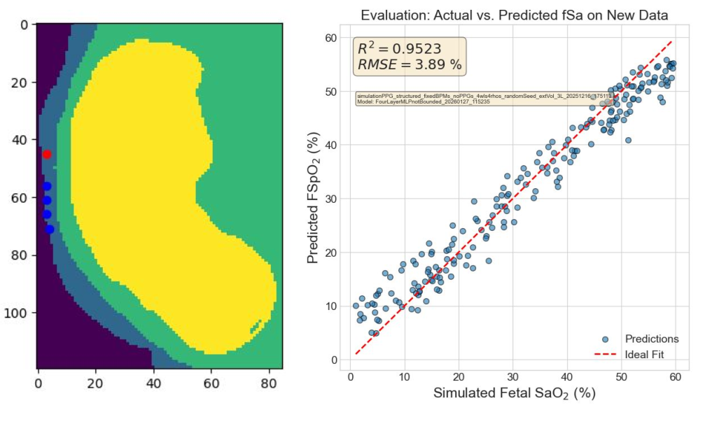 El CIFICEN reafirma su rol pionero en investigación biomédica al culminar la segunda etapa de colaboración con Raydiant Oximetry. Investogadores de Óptica Biomédica y Mecatrónica desarrollaron modelos avanzados de regresión lineal y redes neuronales para predecir con precisión la saturación de oxígeno fetal durante el parto, utilizando predictores derivados de la difusión de luz roja e infrarroja.